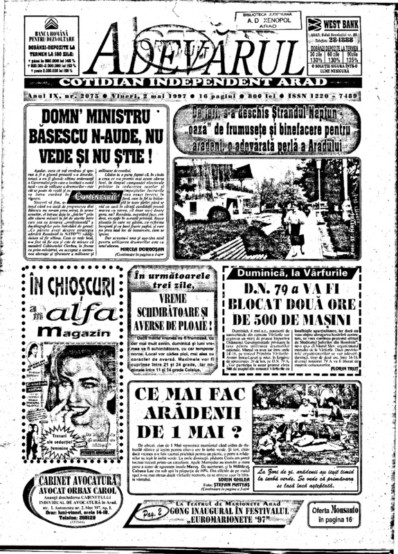 Adevărul, anul IX, nr. 2075, 1997-05-02