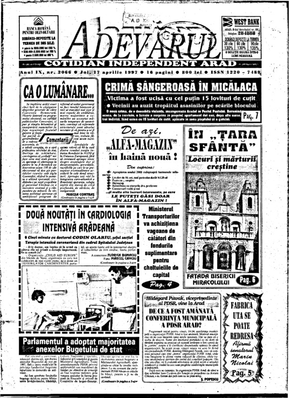 Adevărul, anul IX, nr. 2066, 1997-04-17