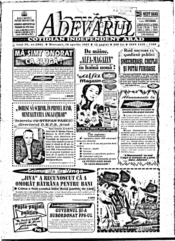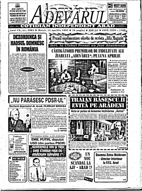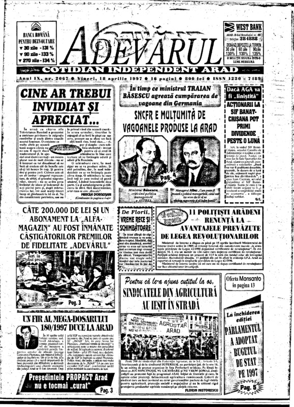 Adevărul, anul IX, nr. 2065, 1997-04-16