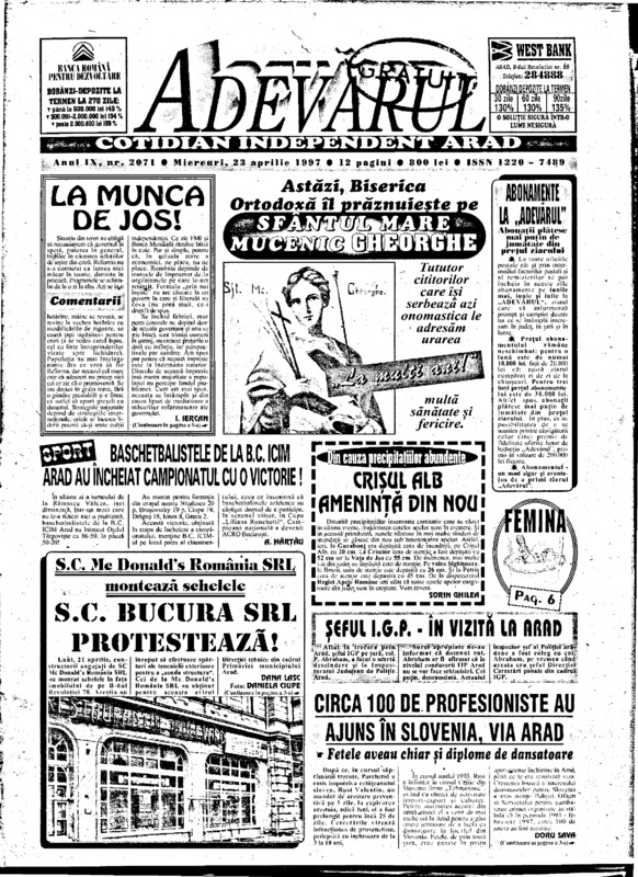 Adevărul, anul IX, nr. 2071, 1997-04-23