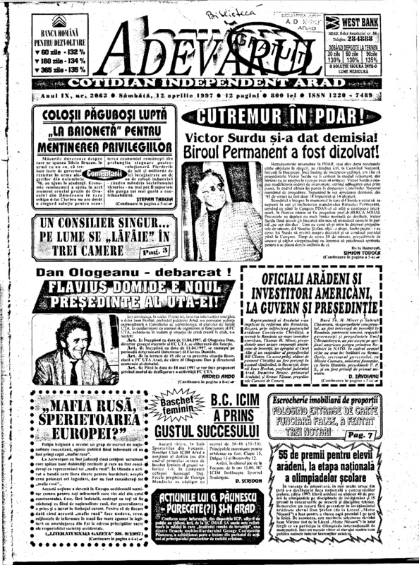 Adevărul, anul IX, nr. 2062, 1997-04-12