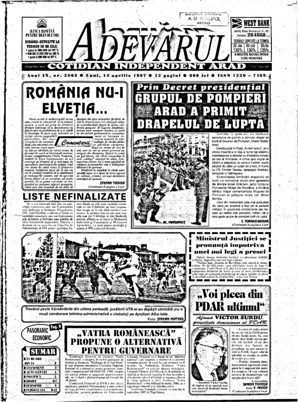 Adevărul, anul IX, nr. 2063, 1997-04-14