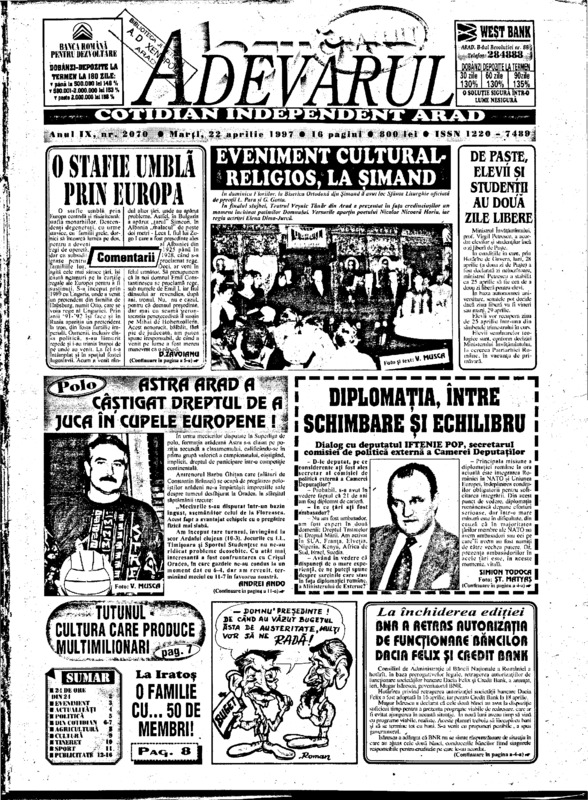 Adevărul, anul IX, nr. 2074, 1997-04-26