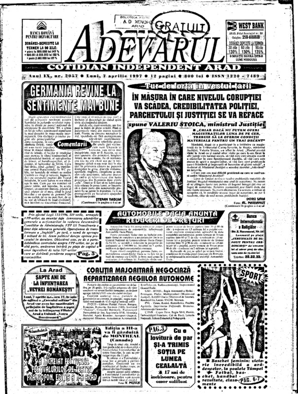 Adevărul, anul IX, nr. 2057, 1997-04-07
