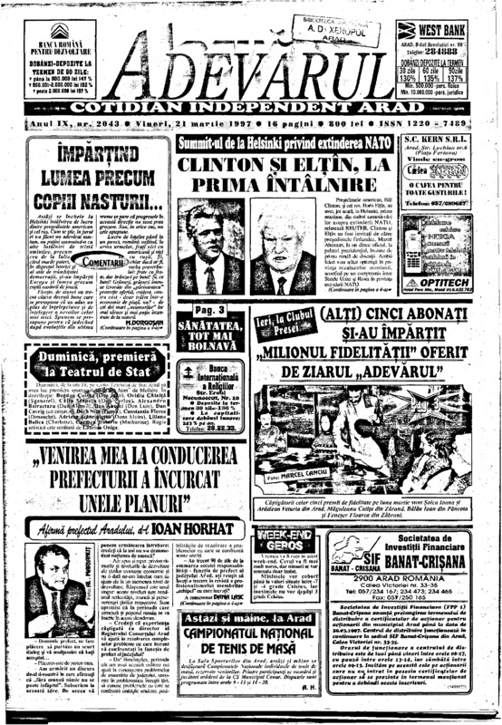 Adevărul, anul IX, nr. 2043, 1997-03-21