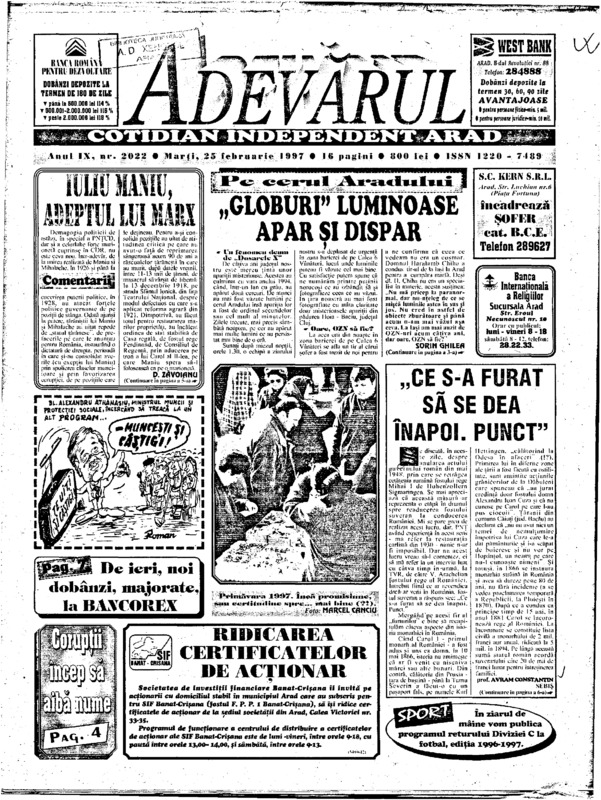 Adevărul, anul IX, nr. 2022, 1997-02-25