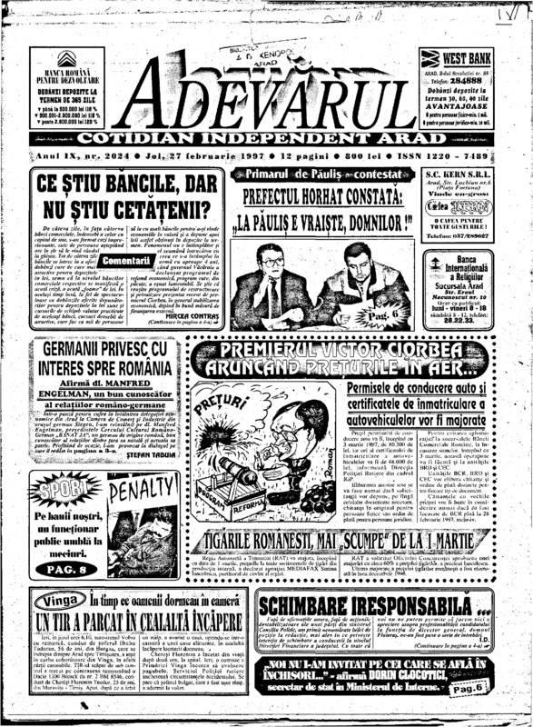 Adevărul, anul IX, nr. 2024, 1997-02-27