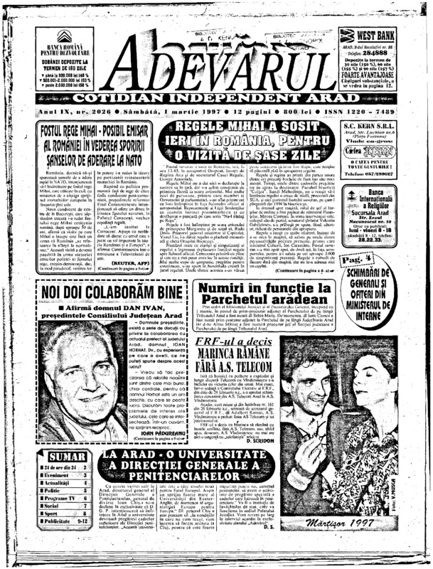 Adevărul, anul IX, nr. 2026, 1997-03-01