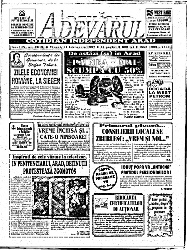 Adevărul, anul IX, nr. 2019, 1997-02-21