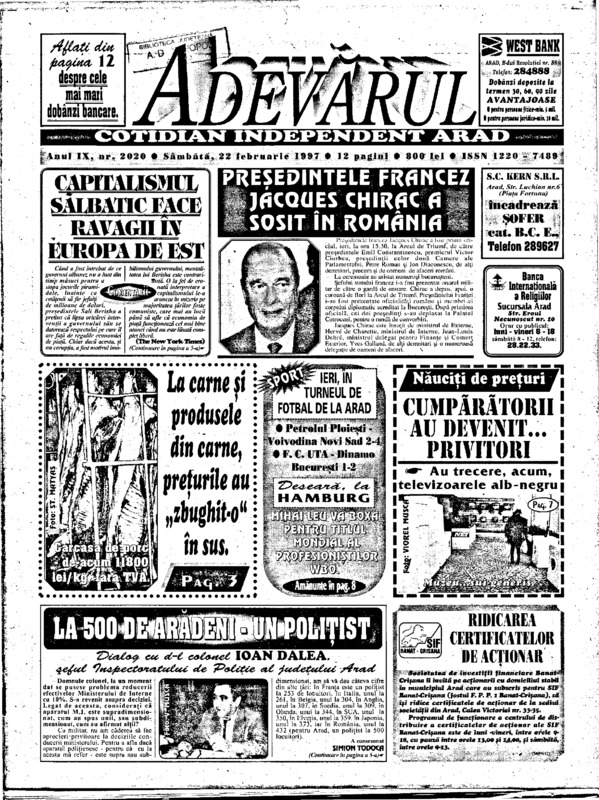 Adevărul, anul IX, nr. 2020, 1997-02-22