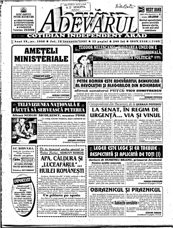 Adevărul, anul IX, nr. 1988, 1997-01-16