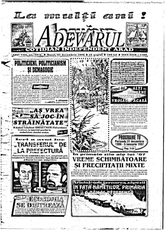 Adevărul, anul VIII, nr. 1978, 1996-12-31