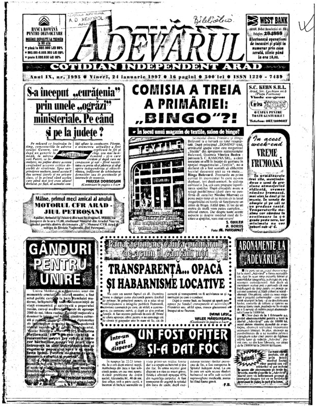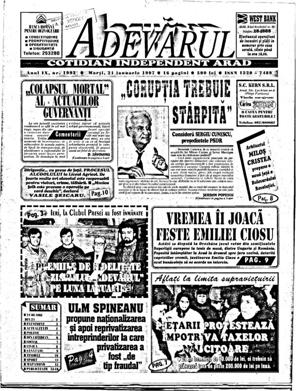 Adevărul, anul IX, nr. 1992, 1997-01-21