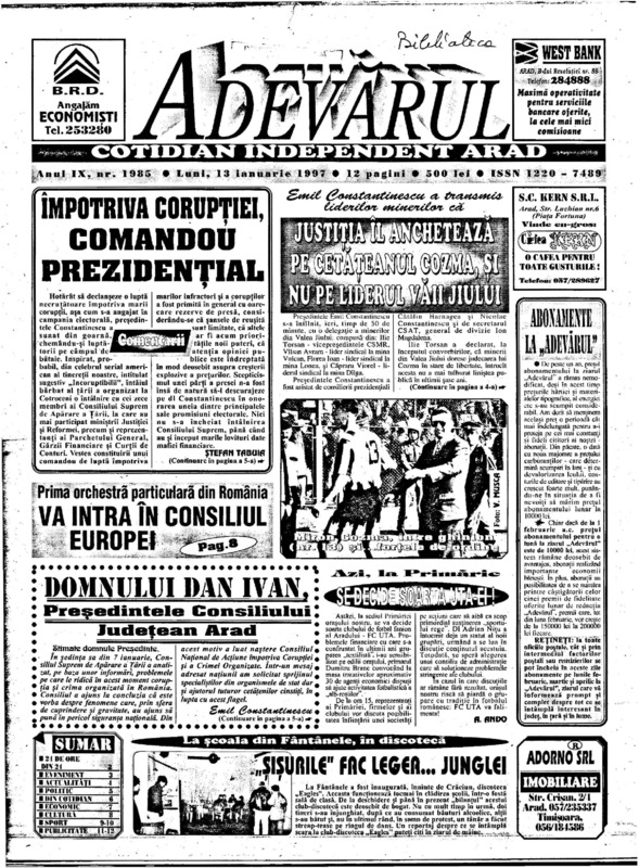 Adevărul, anul IX, nr. 1985, 1997-01-13