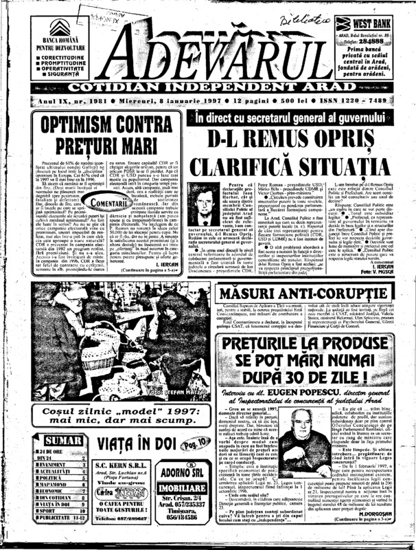 Adevărul, anul IX, nr. 1981, 1997-01-08