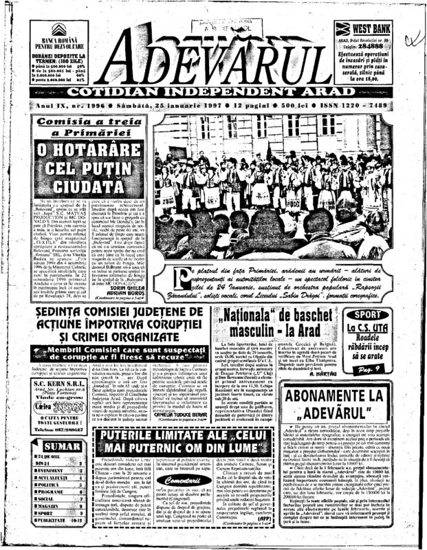 Adevărul, anul IX, nr. 1996, 1997-01-25