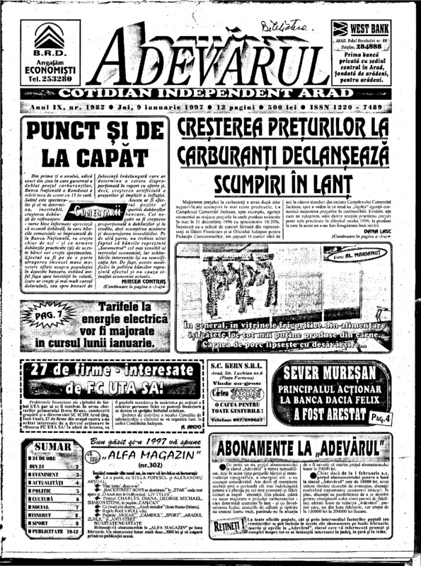 Adevărul, anul IX, nr. 1982, 1997-01-09