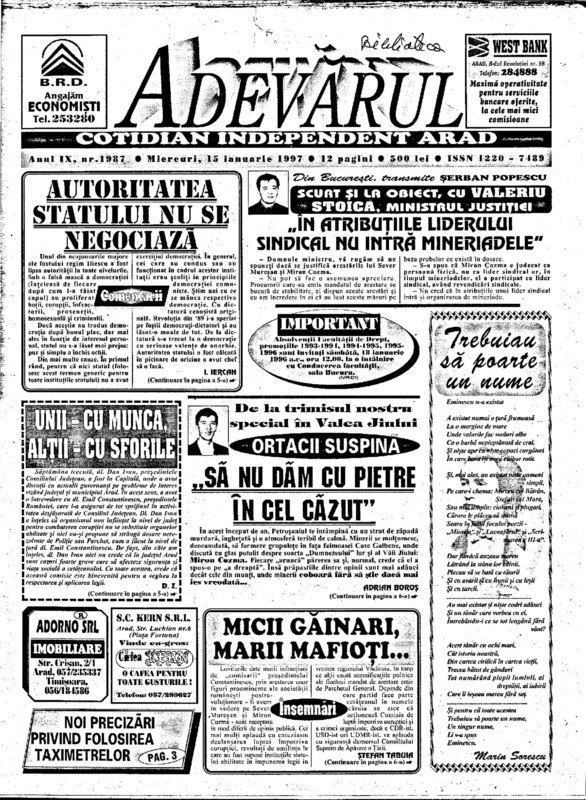 Adevărul, anul IX, nr. 1987, 1997-01-15