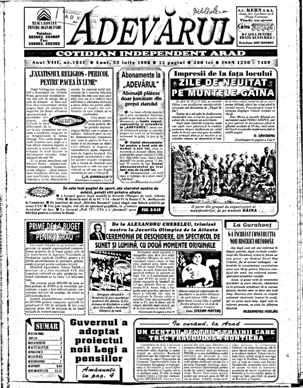 Adevărul, anul VIII, nr. 1841, 1996-07-22