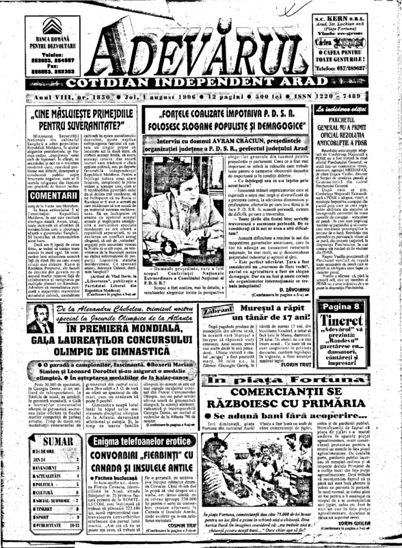 Adevărul, anul VIII, nr. 1850, 1996-08-01