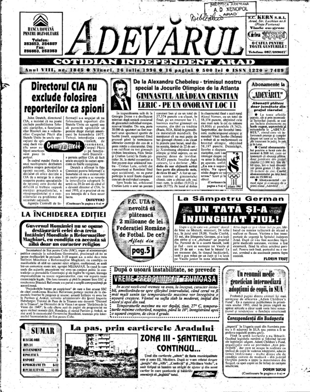 Adevărul, anul VIII, nr. 1845, 1996-07-26
