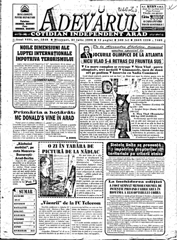 Adevărul, anul VIII, nr. 1849, 1996-07-31
