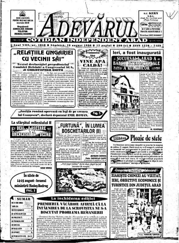 Adevărul, anul VIII, nr. 1858, 1996-08-10