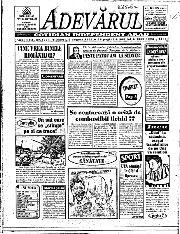 Adevărul, anul VIII, nr. 1854, 1996-08-06