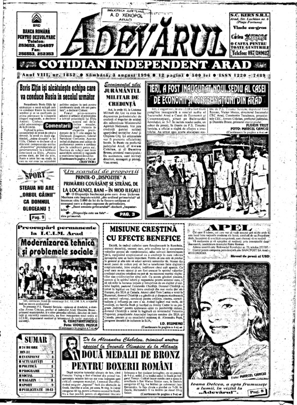 Adevărul, anul VIII, nr. 1852, 1996-08-03
