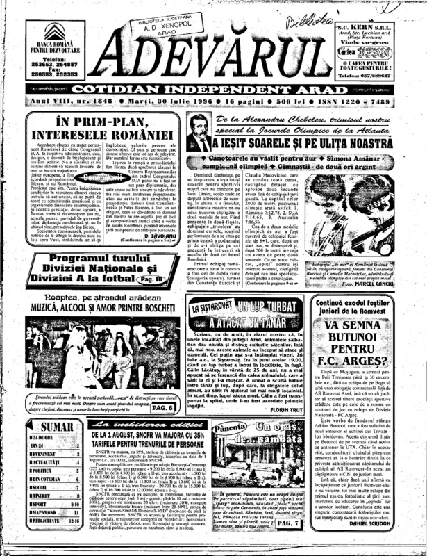 Adevărul, anul VIII, nr. 1848, 1996-07-30