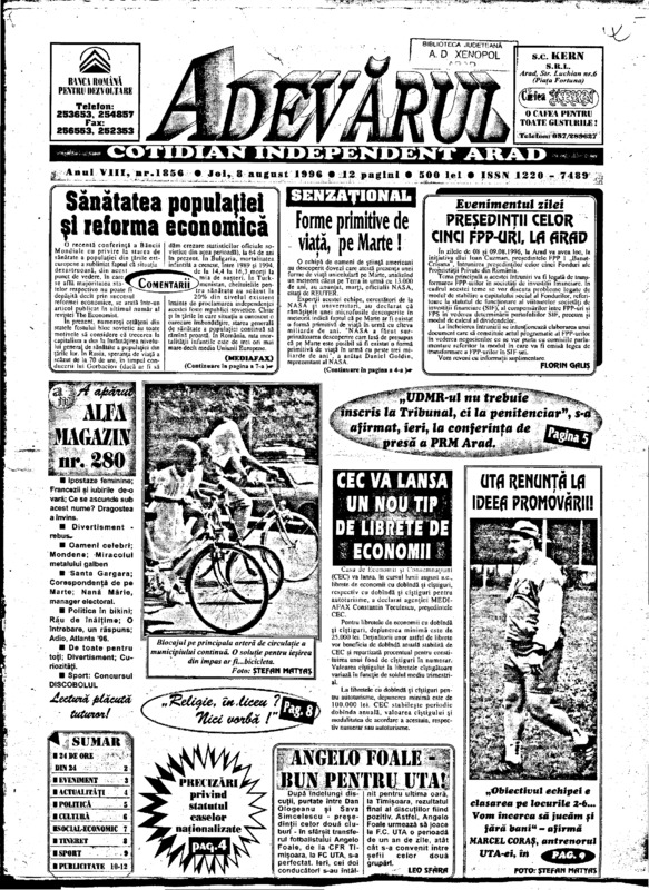 Adevărul, anul VIII, nr. 1856, 1996-08-08