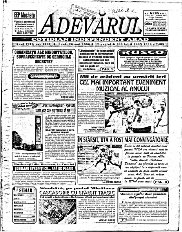 Adevărul, anul VIII, nr. 1787, 1996-05-20