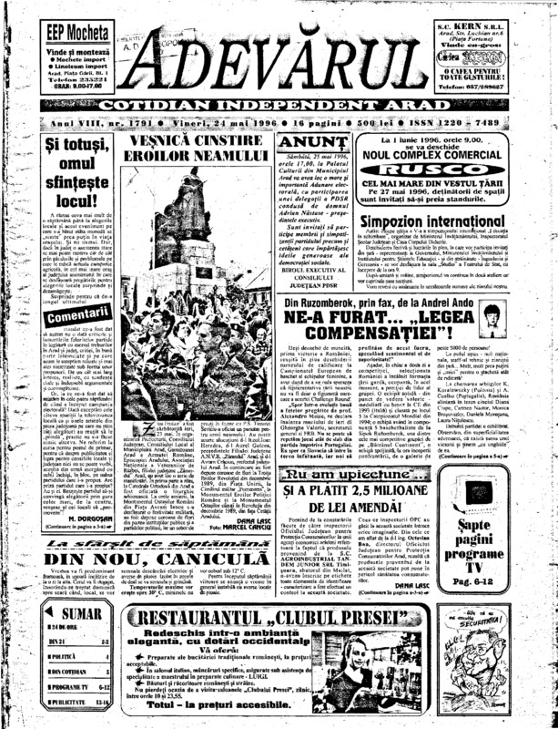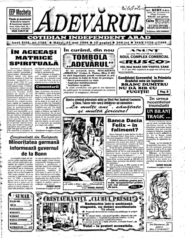 Adevărul, anul VIII, nr. 1788, 1996-05-21