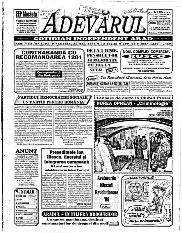 Adevărul, anul VIII, nr. 1792, 1996-05-25