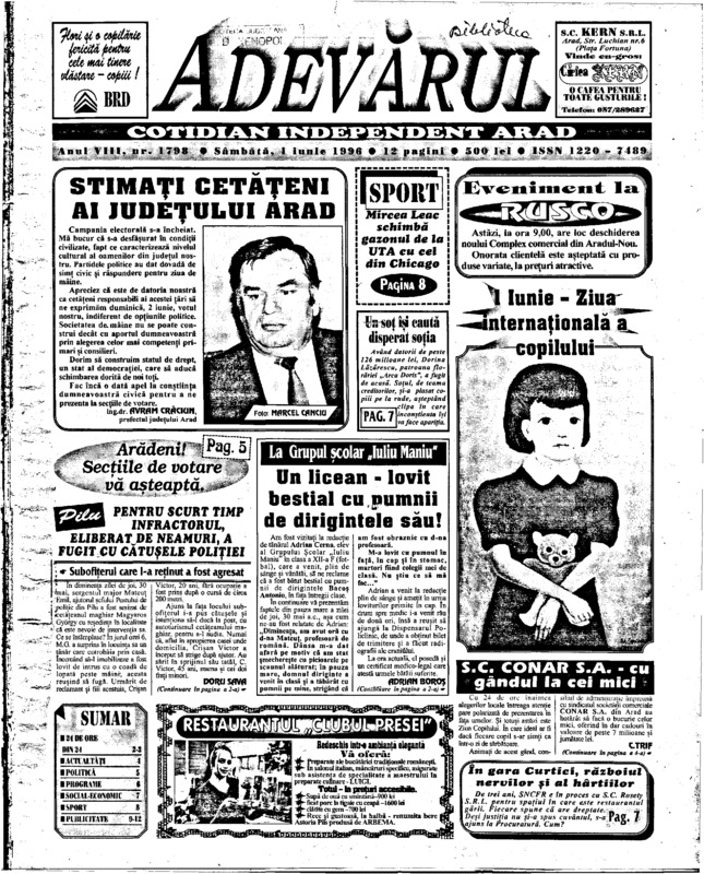 Adevărul, anul VIII, nr. 1798, 1996-06-01