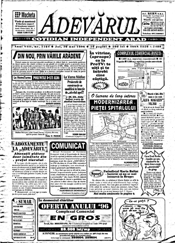 Adevărul, anul VIII, nr. 1784, 1996-05-16