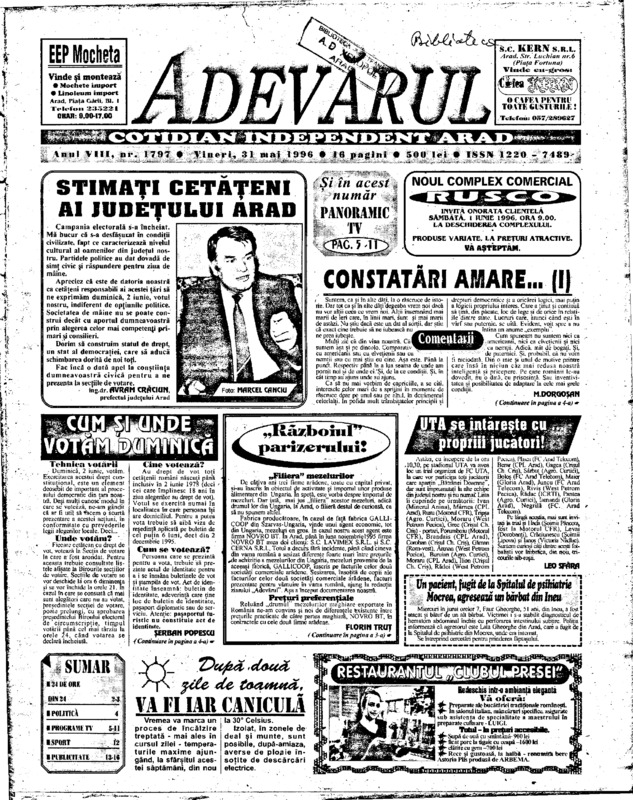 Adevărul, anul VIII, nr. 1797, 1996-05-31