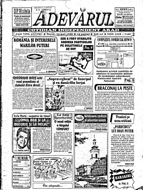 Adevărul, anul VIII, nr. 1782, 1996-05-14