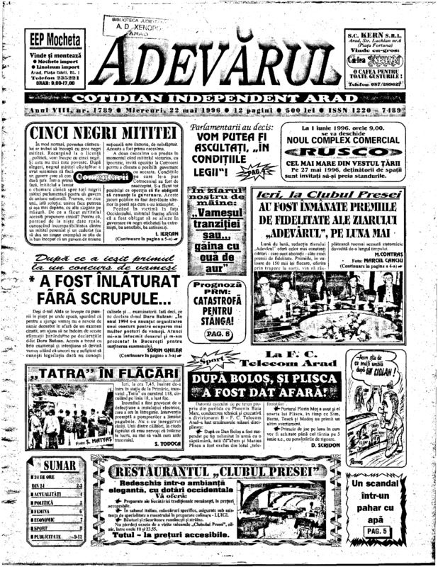 Adevărul, anul VIII, nr. 1789, 1996-05-22