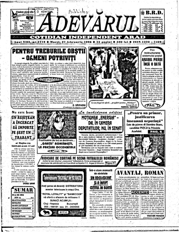 Adevărul, anul VIII, nr. 1719, 1996-02-27