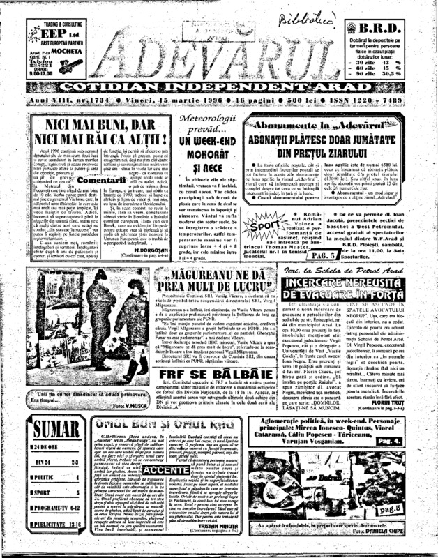 Adevărul, anul VIII, nr. 1735, 1996-03-16