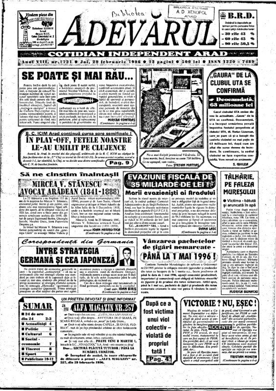 Adevărul, anul VIII, nr. 1721, 1996-02-29