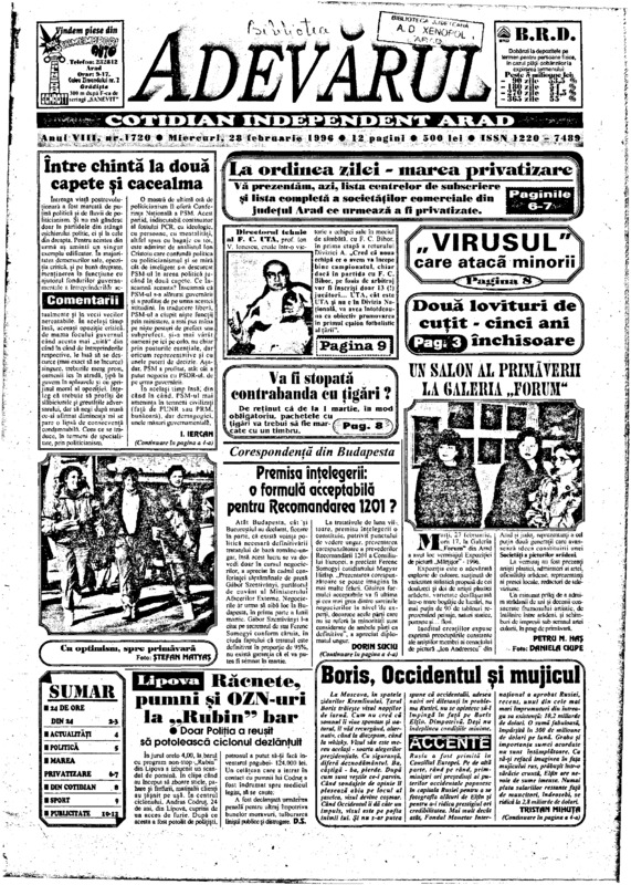 Adevărul, anul VIII, nr. 1720, 1996-02-28
