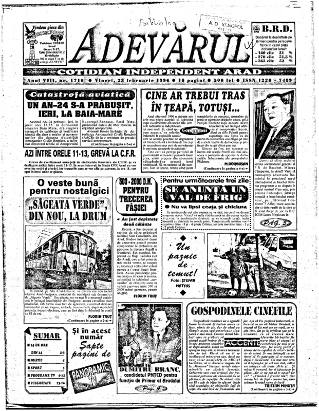 Adevărul, anul VIII, nr. 1716, 1996-02-23