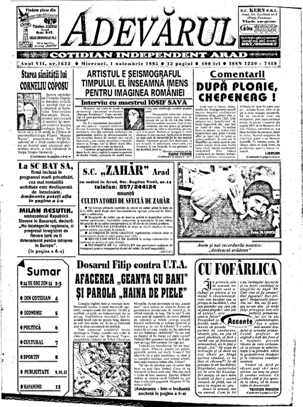 Adevărul, anul VII, nr. 1623, 1995-11-01