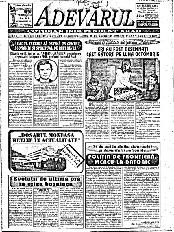 Adevărul, anul VII, nr. 1613, 1995-10-20