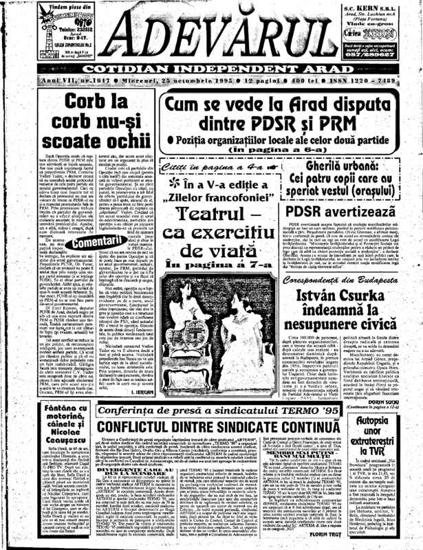 Adevărul, anul VII, nr. 1617, 1995-10-25