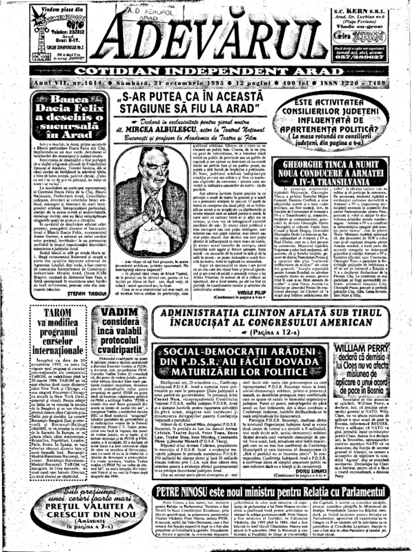 Adevărul, anul VII, nr. 1614, 1995-10-21