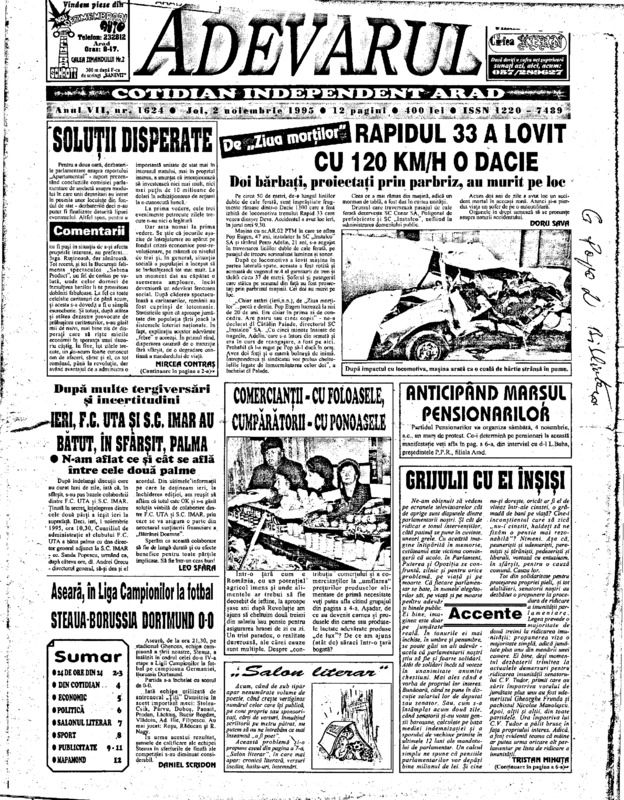 Adevărul, anul VII, nr. 1624, 1995-11-02