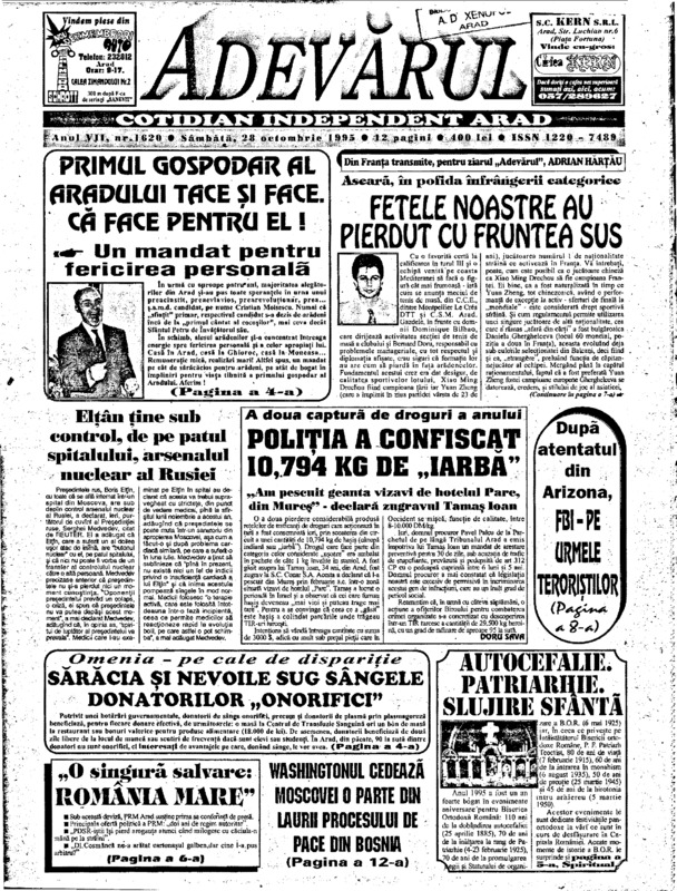 Adevărul, anul VII, nr. 1620, 1995-10-28
